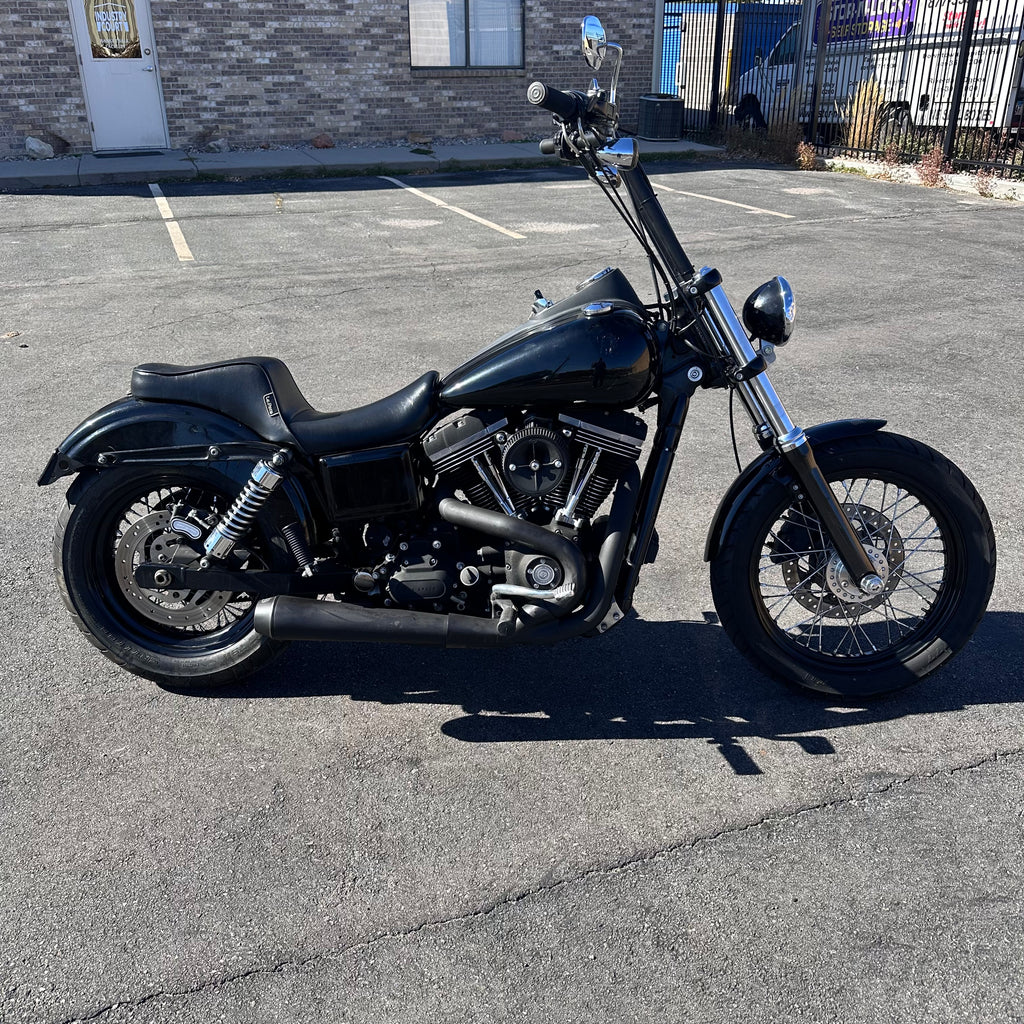 This Street Bob has the tried and true 103 engine with a six speed! It has a brand new set of tires installed. Stage 1 performance package with a full system 2-1 Cobra exhaust and an S&S air intake! It has a cool style with the Dyna chassis and T-Bars. Running great with 33k miles and a clean title!