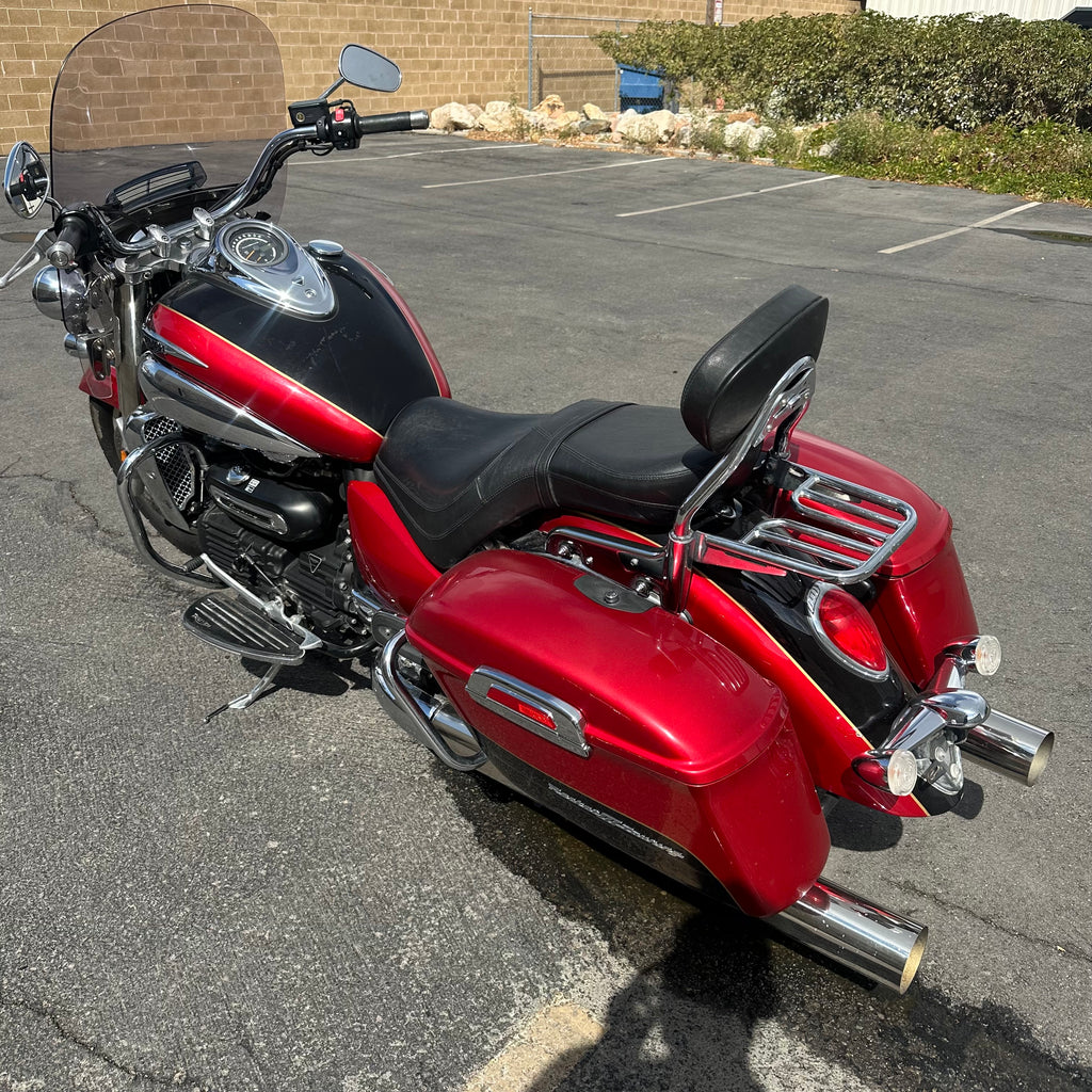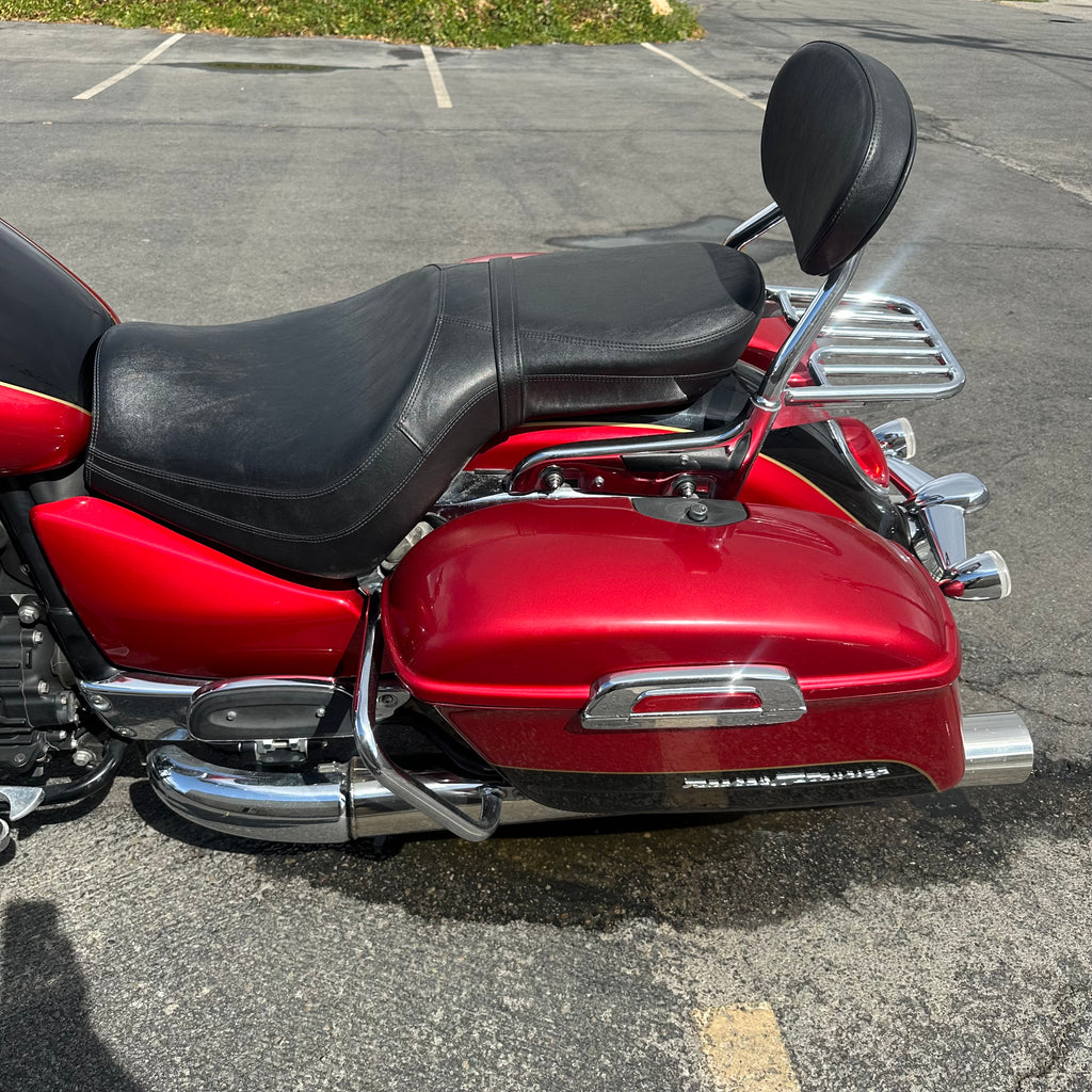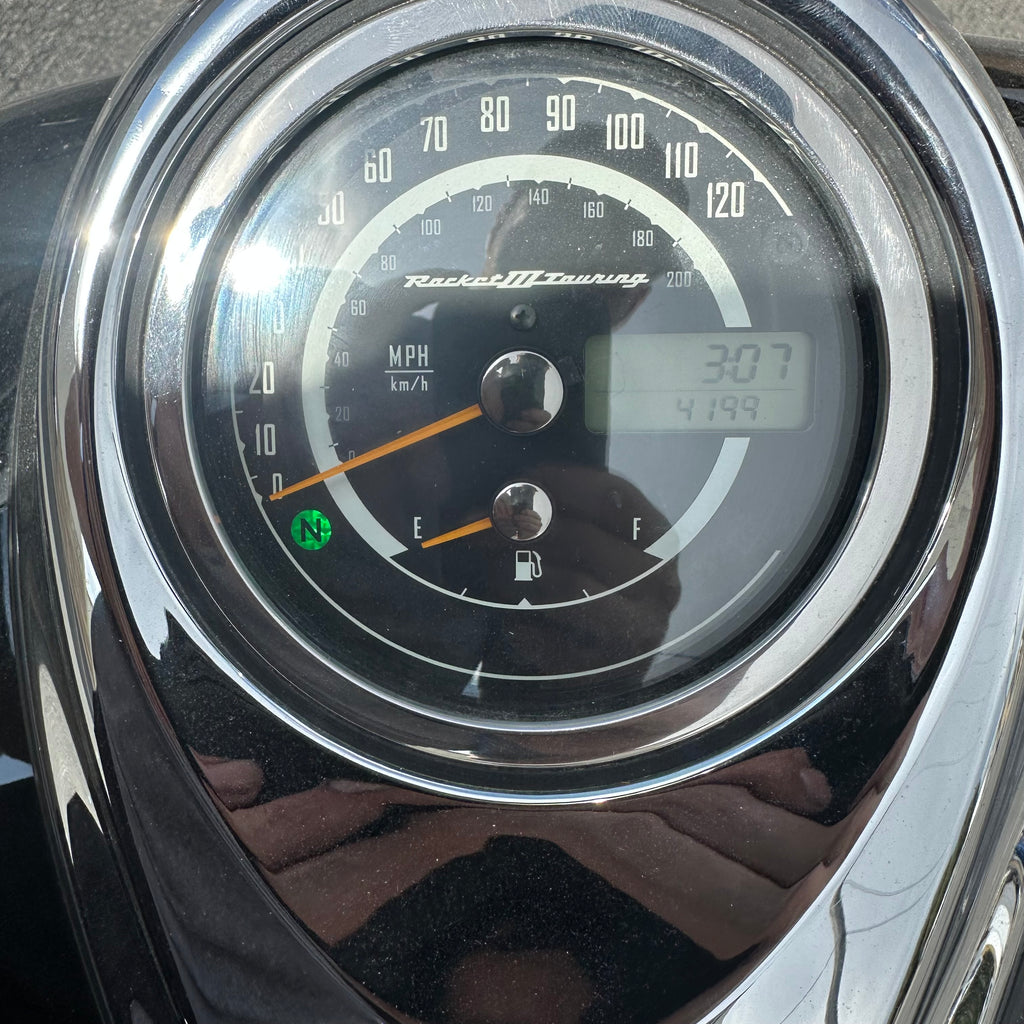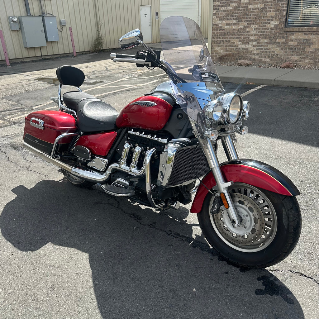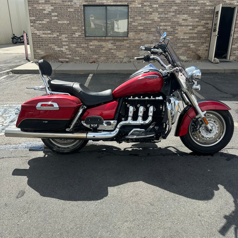 The 2015 Triumph Rocket 3 Touring delivers massive torque from its iconic 2,300cc triple cylinder engine, built for effortless highway cruising. This one has ONLY 4,200 MILES and a clean title. It features classic touring style with spacious saddlebags and a relaxed, upright riding position. The windshield and floorboards make long-distance rides comfortable and smooth. Perfect for riders who want big power wrapped in true long-haul comfort.
