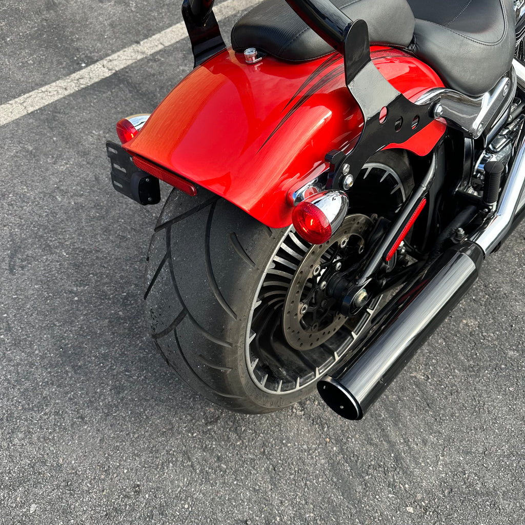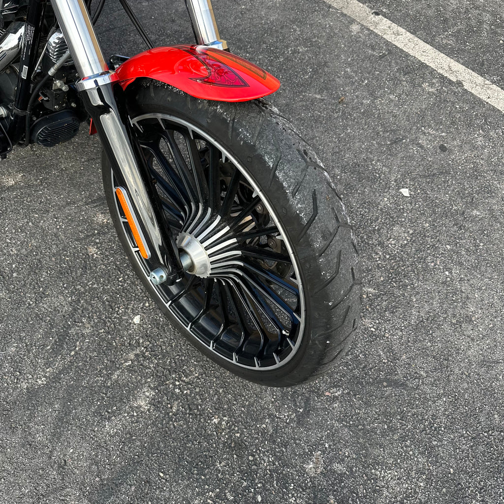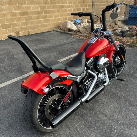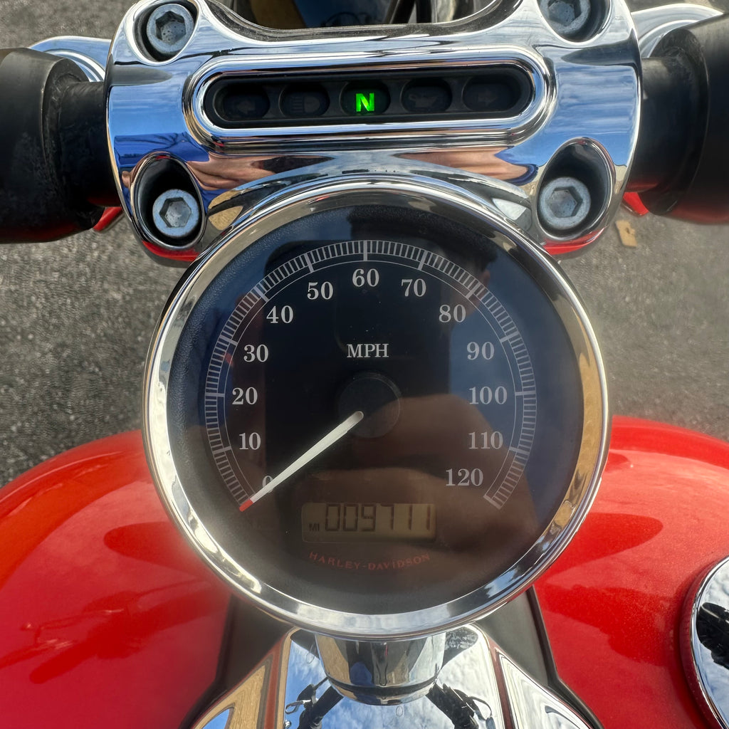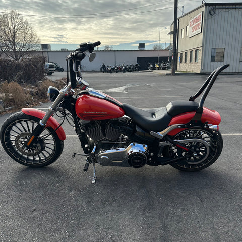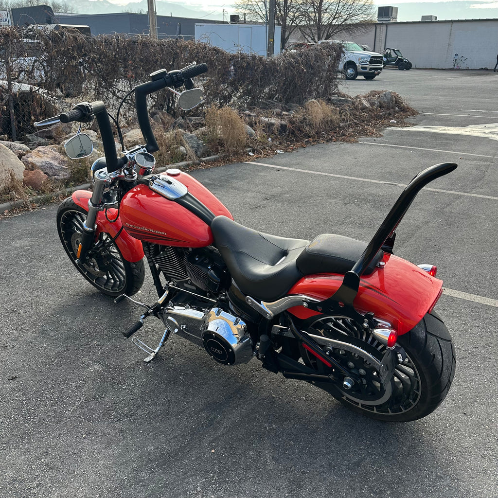 Super cool Breakout with the tried and true 103 engine! It has a good looking orange paint job and a custom style. ONLY 9,700 miles and has a clean title. This one is keyless and does have abs. The exhaust is loud as the baffles have been deleted, upgraded handle bars, sissy bar, LED headlight and turn signals, and an upgraded horn.