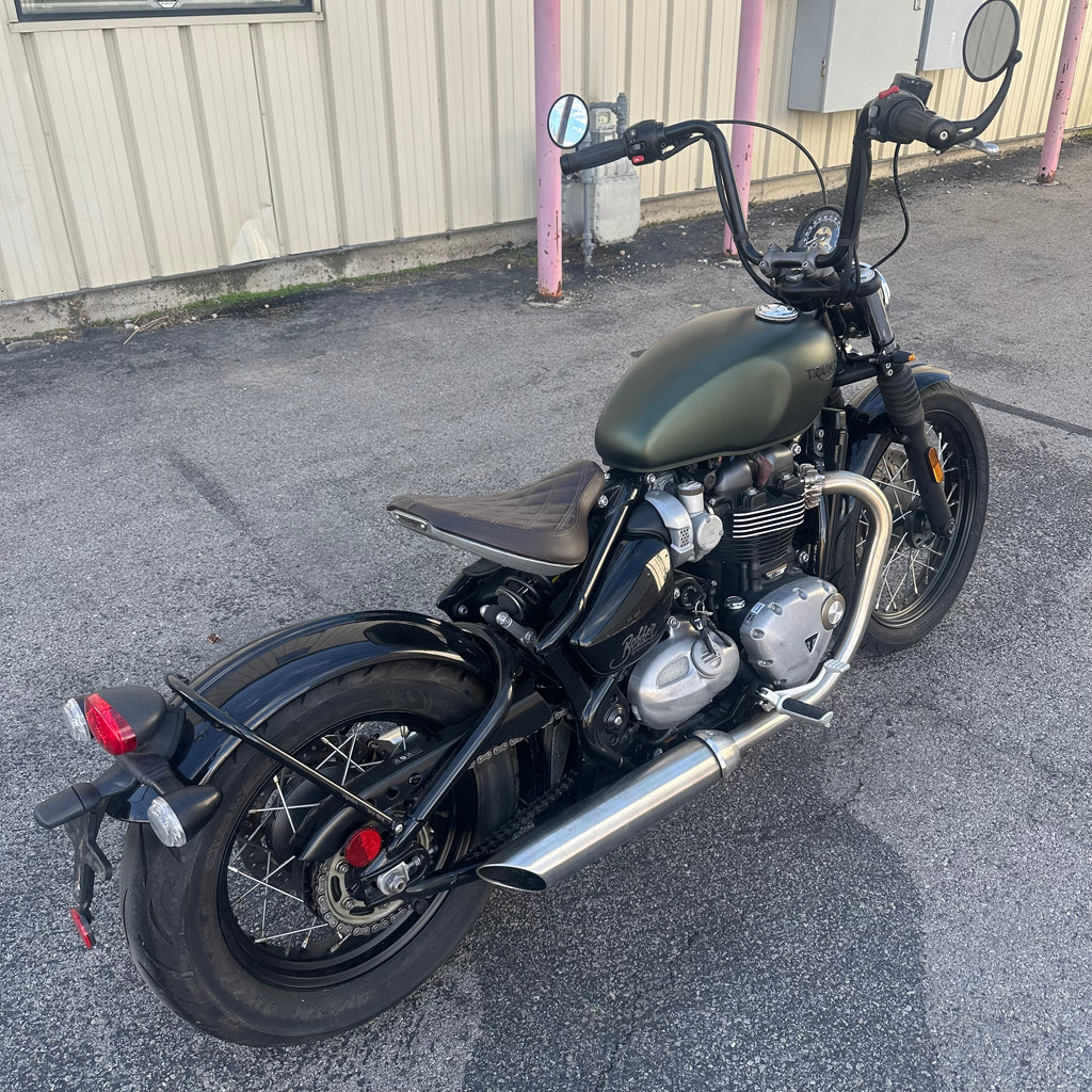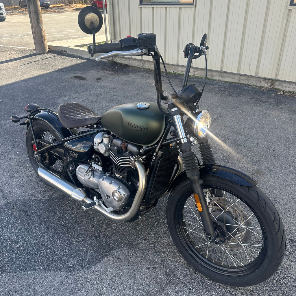 2019 Triumph Bonneville Bobber with ONLY 700 MILES!!! It has a powerful 1200cc High Torque engine and classic hardtail-style design with a hidden monoshock beneath the seat. Features include ride-by-wire, selectable riding modes, and LED lighting for modern performance with vintage attitude. Premium finishes, a floating solo seat, and low, muscular stance make it a standout cruiser. Perfect for riders who want timeless British style with punchy torque and customization potential. Clean and clear title!