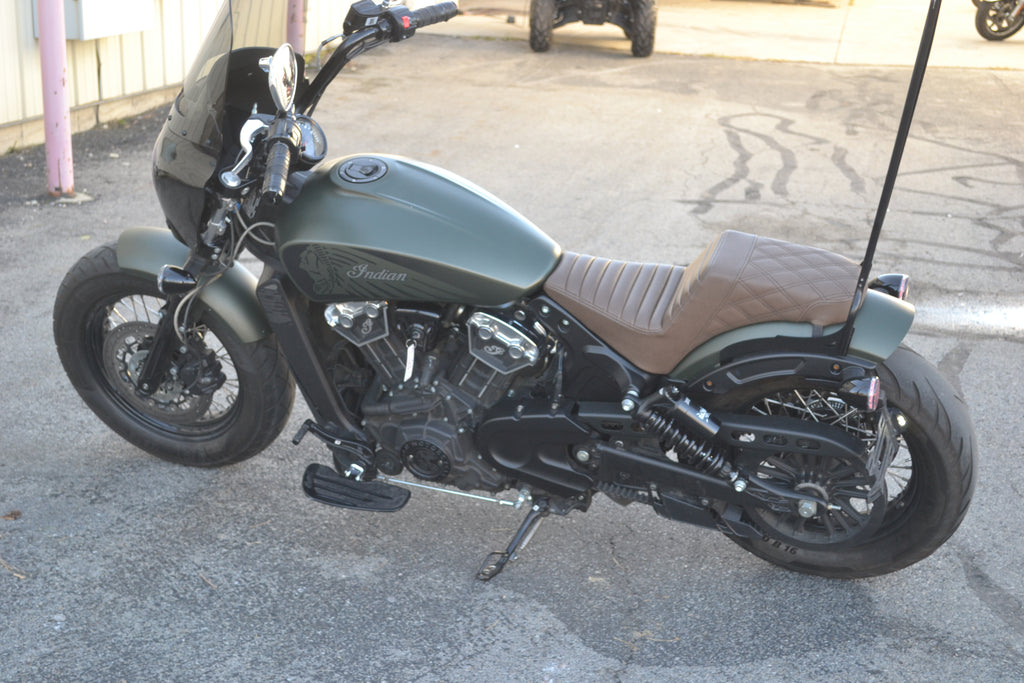 Pretty sweet set up on this Bobber; It has Dean Speed Rampage mufflers, Road Warrior fairing, Saddlemen Step Up seat, Indian floorboards, a tall sissy bar, and the TWENTY sub model comes standard with the mini ape handlebars! It is running super smooth with just 18,700 miles and has a clean title. It has the full sized 1133cc engine making 100 horsepower!