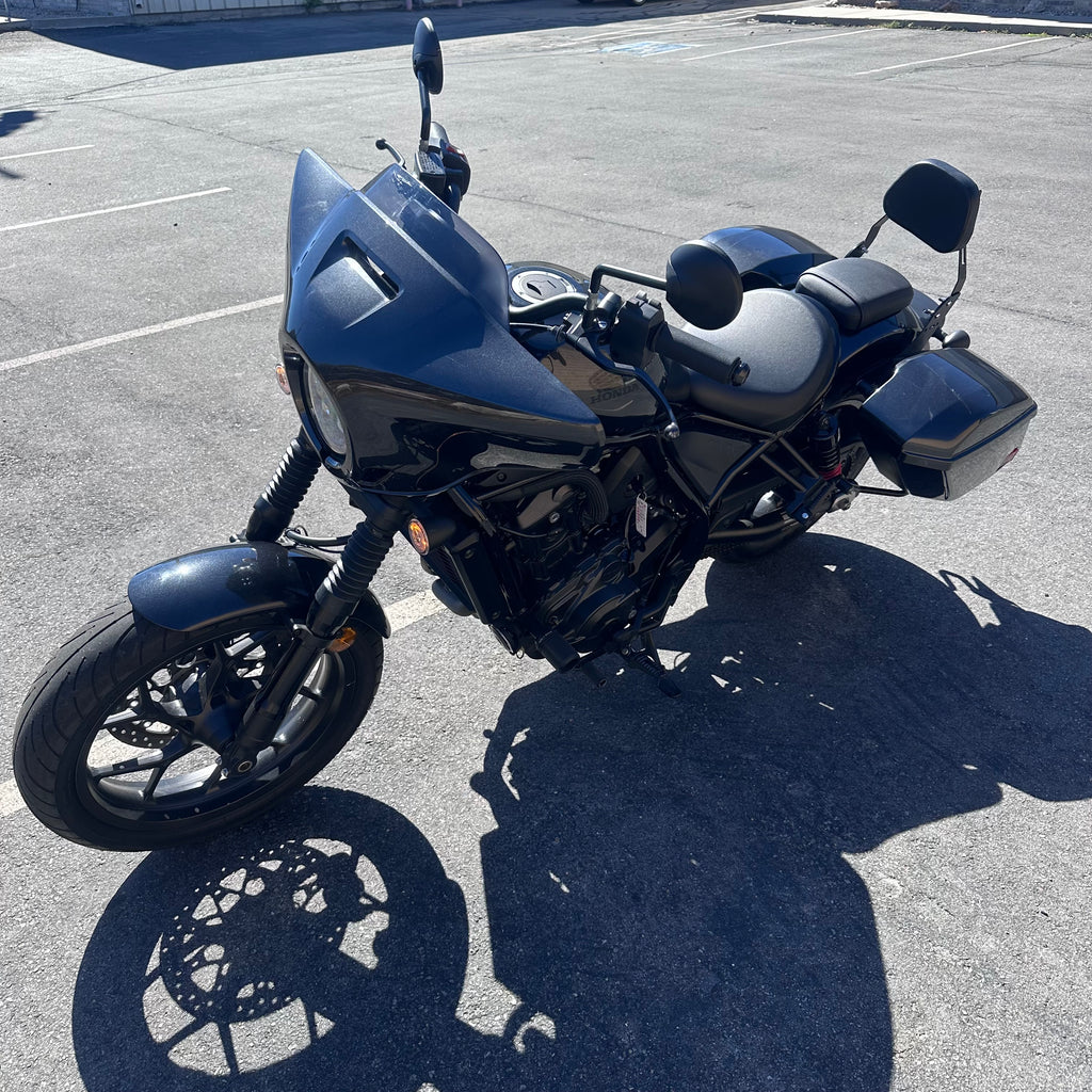 The 2021 Honda Rebel 1100 is powered by a 1,085 cc liquid-cooled, parallel-twin engine delivering about 72 lb-ft of torque, giving strong pull off the line. This one has just 6,500 miles, a fairing, backrest, saddlebags, and a CLEAN TITLE. It comes equipped standard with ABS, selectable riding modes (Standard, Rain, Sport, plus a user-programmable mode), a slipper/assist clutch, a six-speed manual, and LED lighting with a USB-C port. Its low seat height (~27.5 in), cruiser styling, and muscular yet smooth power delivery make it both comfortable and engaging. Best suited for intermediate riders who want a big cruiser that’s still manageable, with enough torque to grow into without overwhelming newer riders.