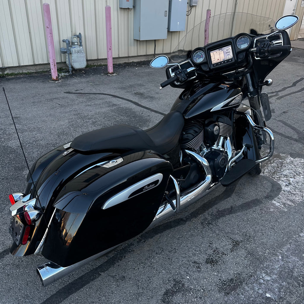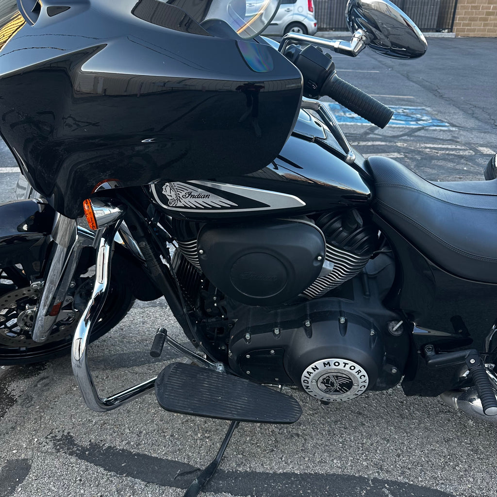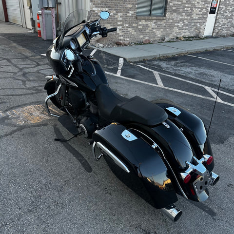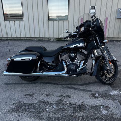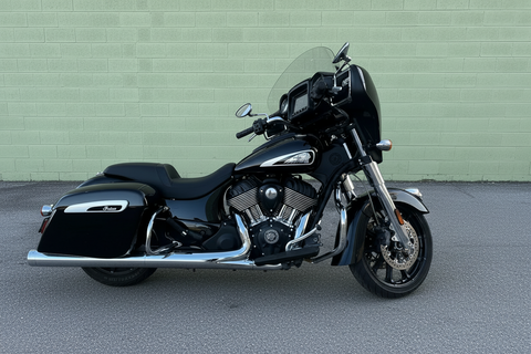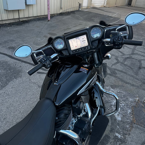 The 2022 Indian Chieftain is a premium touring cruiser powered by the Thunderstroke 111 V-twin for commanding torque and effortless highway cruising. Its integrated fairing with Ride Command touchscreen and built-in audio delivers connectivity and entertainment on the road. Hard saddlebags, cruise control, and advanced ABS make it ready for long hauls. This one has just 14,200 miles and a clean title! Perfect for riders who want classic American style with modern touring capability.