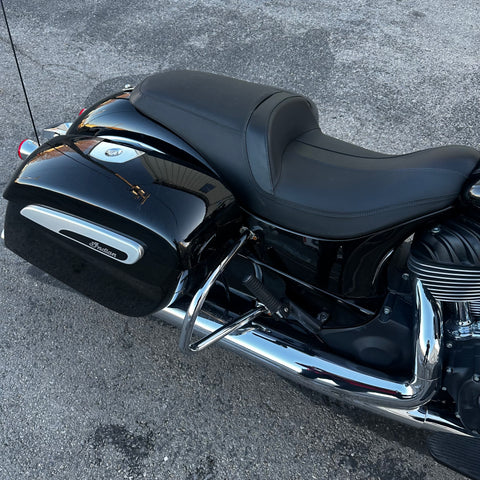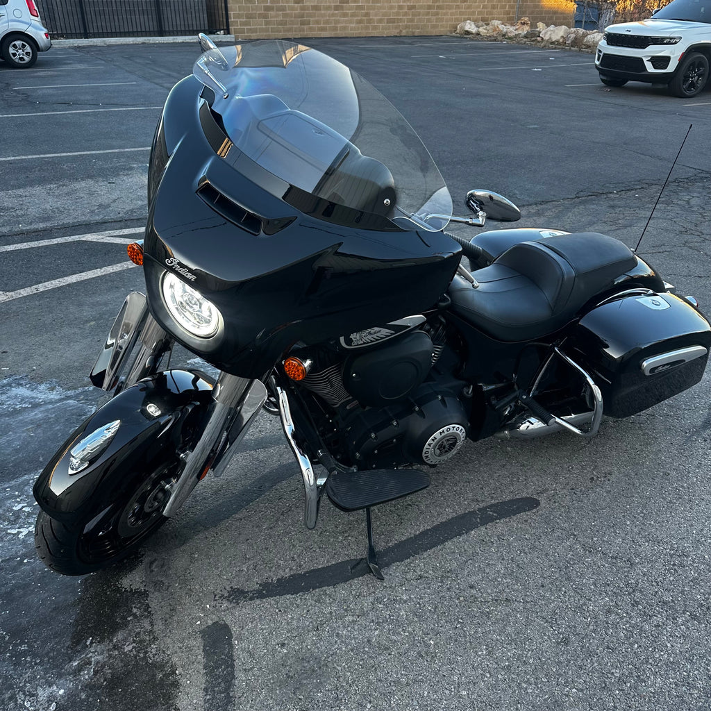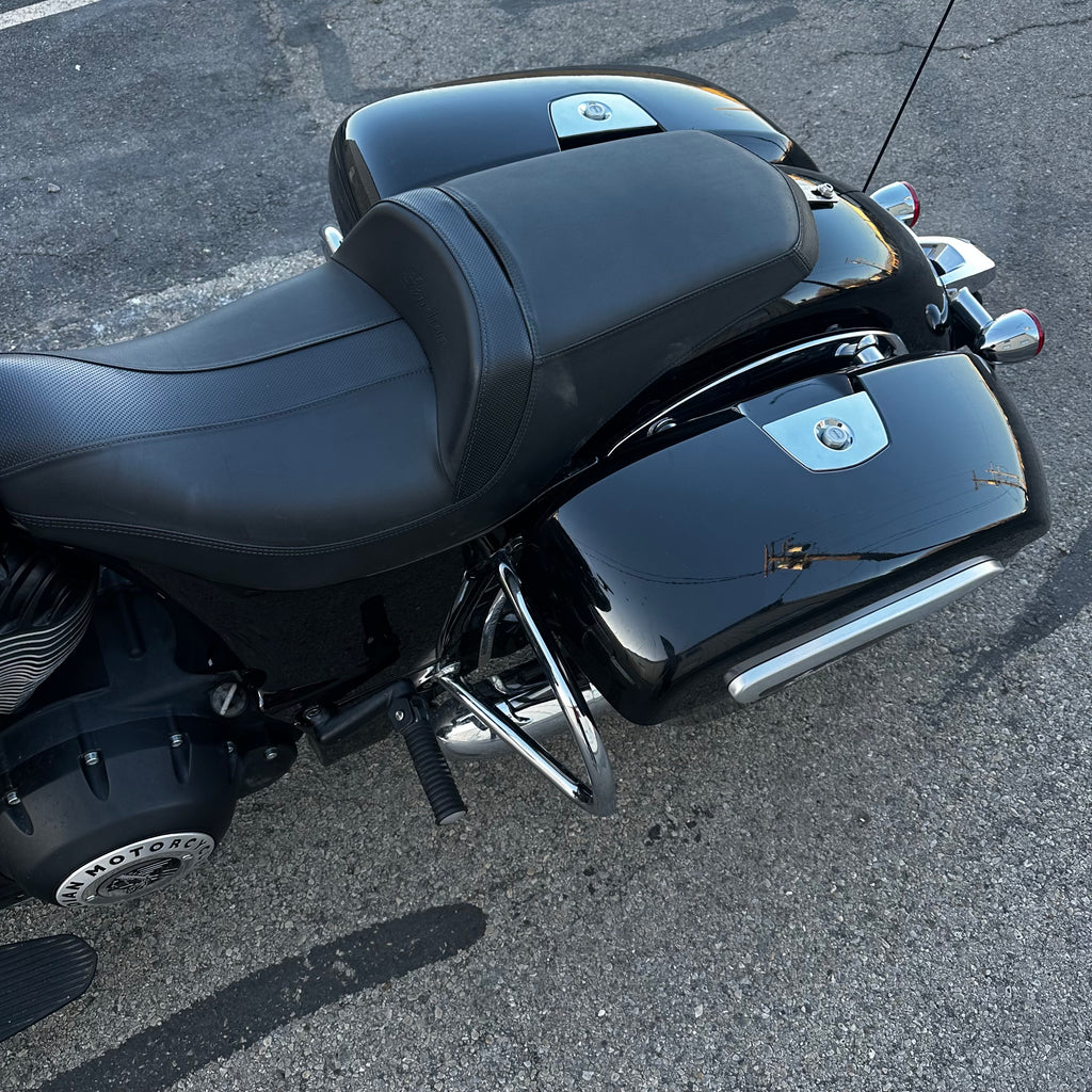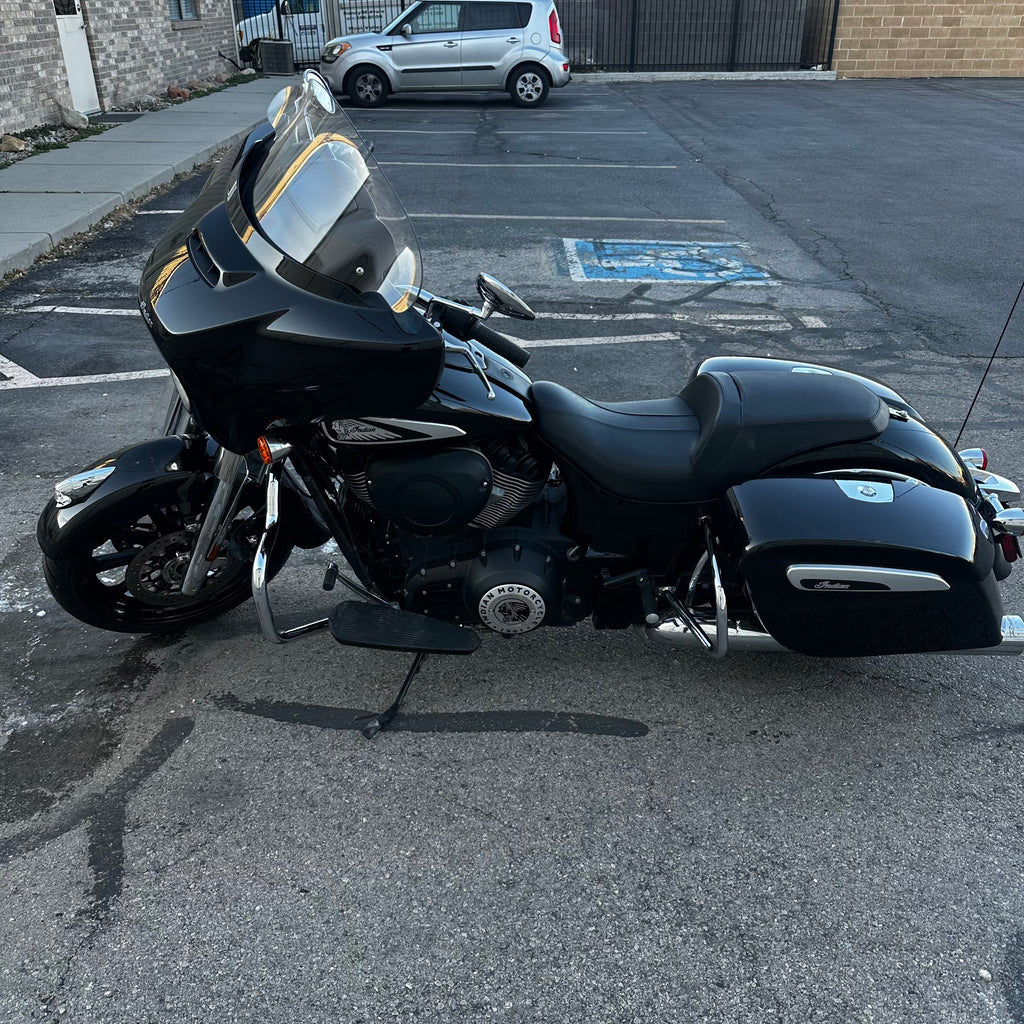 The 2022 Indian Chieftain is a premium touring cruiser powered by the Thunderstroke 111 V-twin for commanding torque and effortless highway cruising. Its integrated fairing with Ride Command touchscreen and built-in audio delivers connectivity and entertainment on the road. Hard saddlebags, cruise control, and advanced ABS make it ready for long hauls. This one has just 14,200 miles and a clean title! Perfect for riders who want classic American style with modern touring capability.