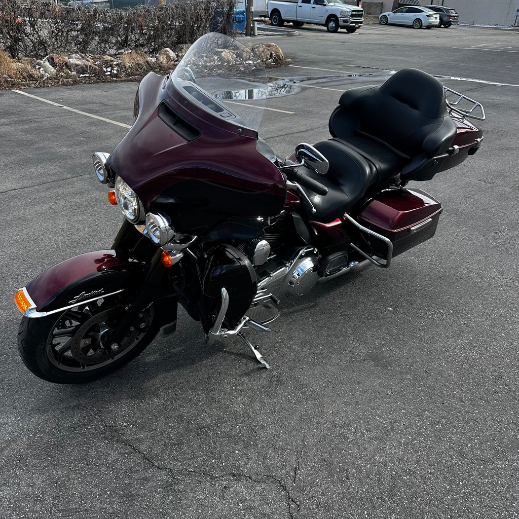 2014 Harley-Davidson Ultra Limited features a torquey 103ci Twin-Cam engine with comfortable cruise capability. Its touring-focused setup includes a plush seat, full fairing, and integrated luggage for long-distance comfort. Advanced infotainment and rider amenities keep the miles enjoyable. Ideal for riders who want classic American touring presence and highway comfort. Just 25k miles and a clean title!