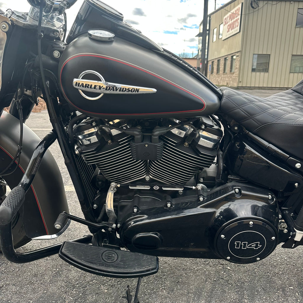 Nice two tone pain job in this Heritage, it also has an upgraded exhaust and Saddlemen Touring Seat! The Milwaukee8 114 ci engine makes a ton of power and is super smooth. Just 9,700 miles and a clean title!