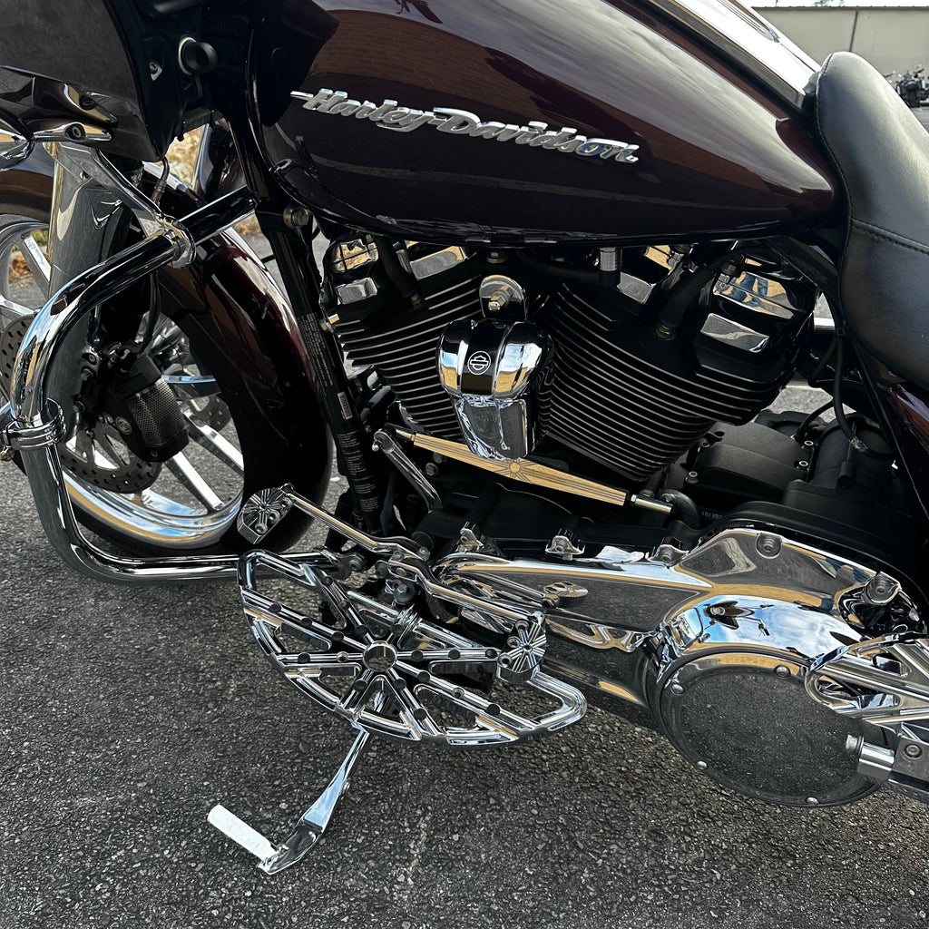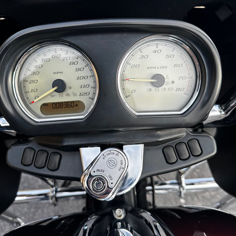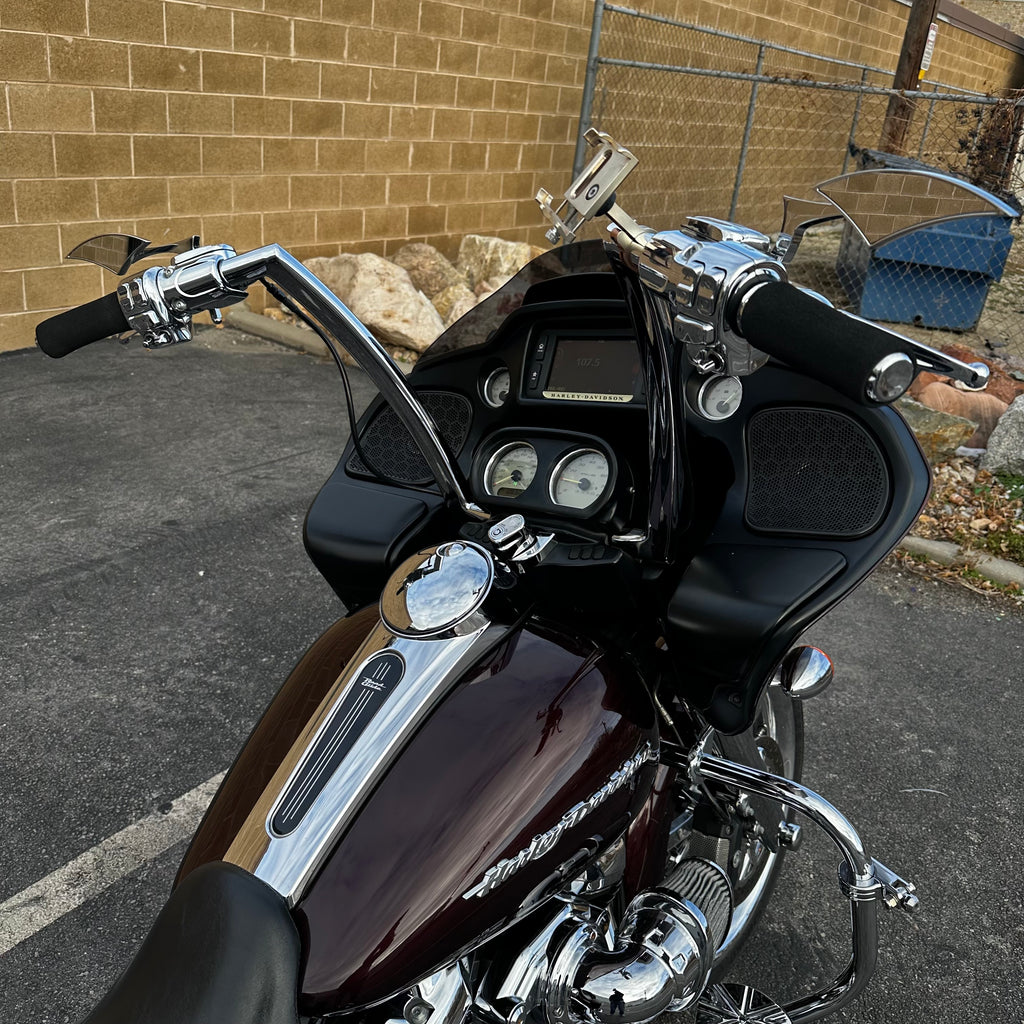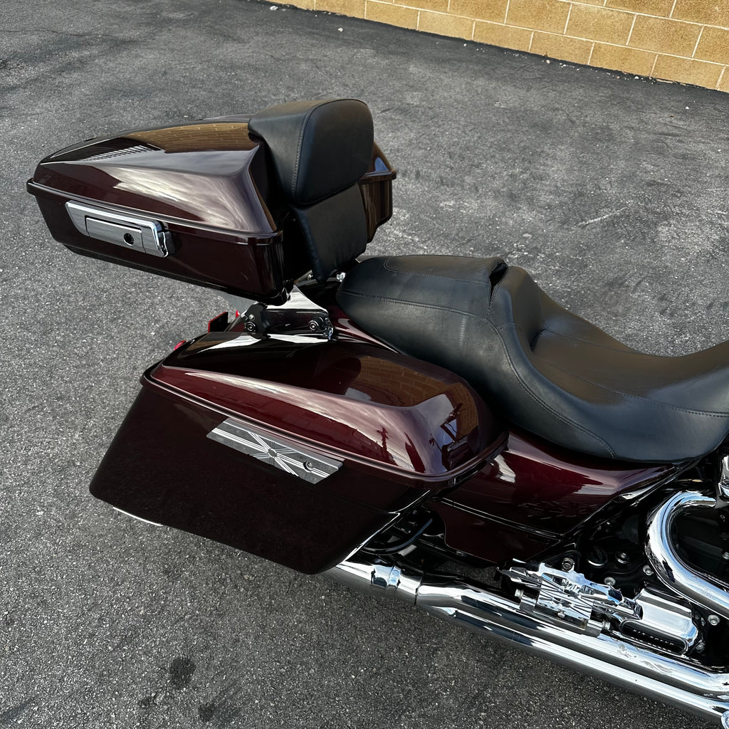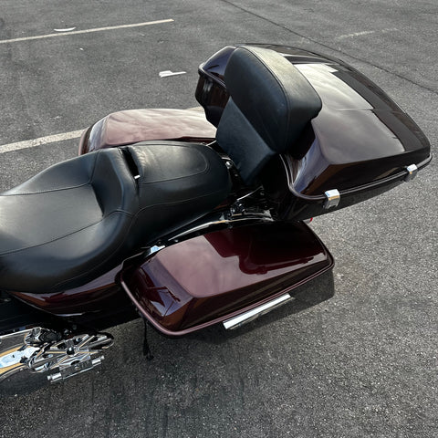 Super cool look on this Road Glide! It has the 107ci engine with a stage 1 performance package with the upgraded exhaust and air intake, Upgraded handlebars, upgraded front wheel, color matched "pizza box" tour pack, and some smaller upgrades like the floorboards and grips. It has ONLY 8,300 miles and a clean title!