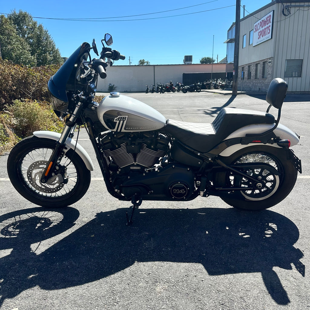 The 2021 Harley-Davidson Street Bob 114 is powered by a 1,868 cc Milwaukee-Eight 114 V-twin engine delivering 119 lb-ft of torque, giving it muscular pull from the go. This one has just 3,200 miles and a clean title! It comes with a 6-speed Cruise Drive transmission, chopped fenders, mini-ape handlebars, keyless ignition, LED headlight, and a stripped-down “bobber” styling with black steel-laced wheels. Its raw, commanding presence, low seat height of 25.8 in, and strong mid-range torque make it a serious candidate for riders who want big power in a lean, aggressive package. Best suited for intermediate to experienced riders who crave torque-laden cruising, customization potential, and classic Harley street performance.