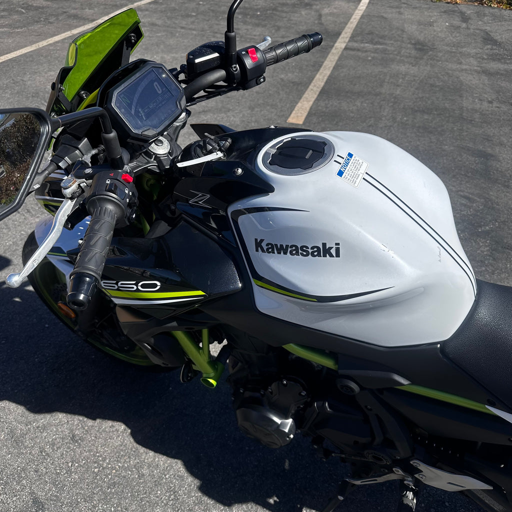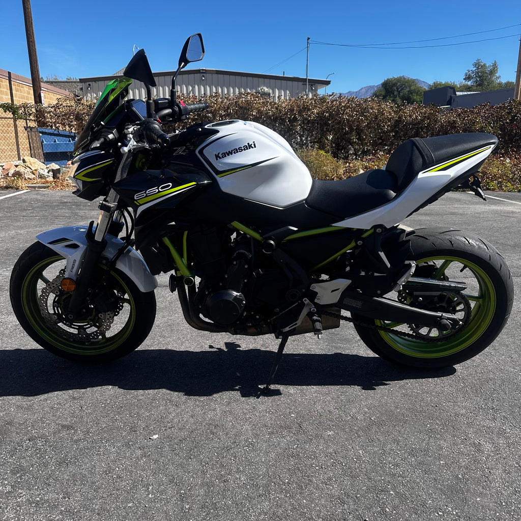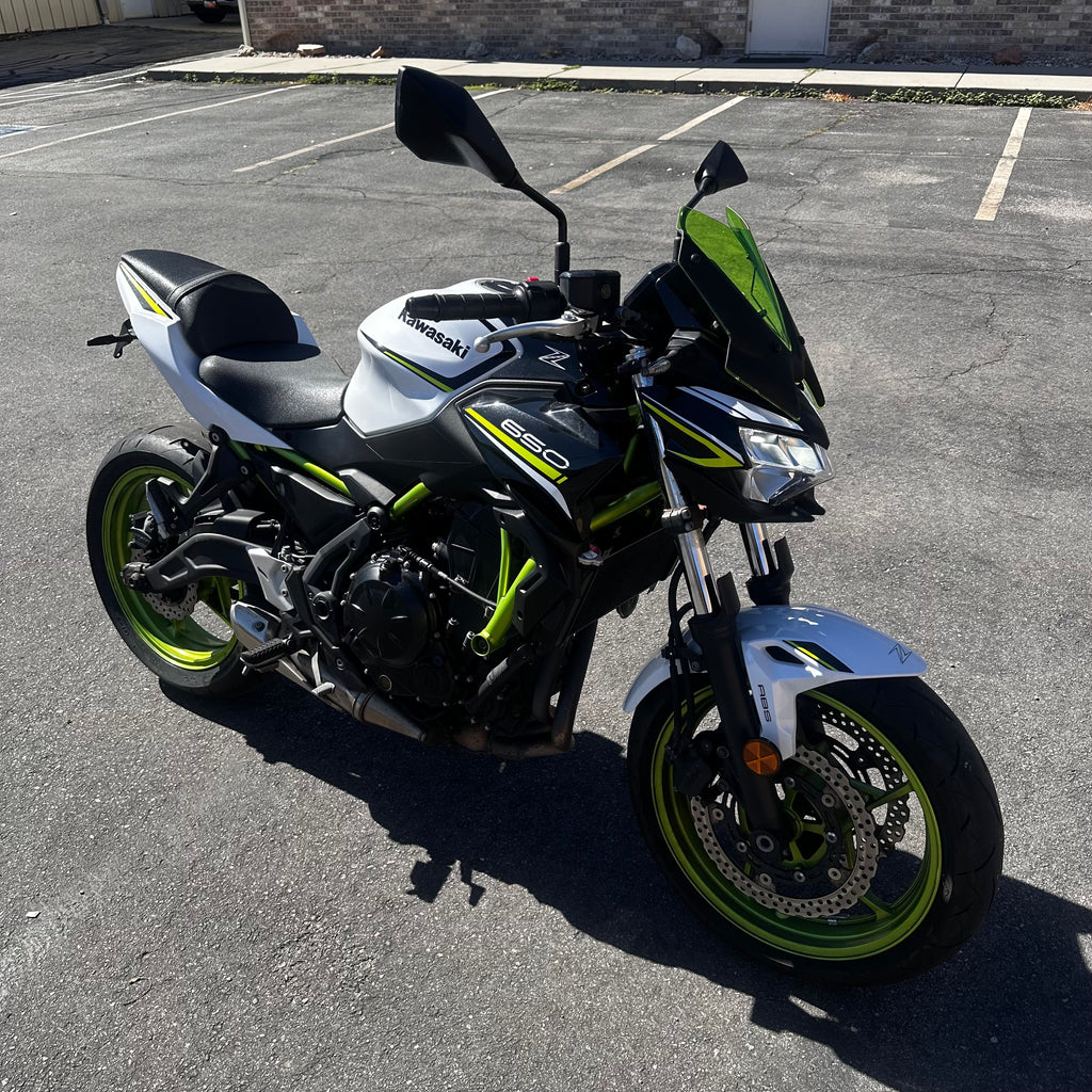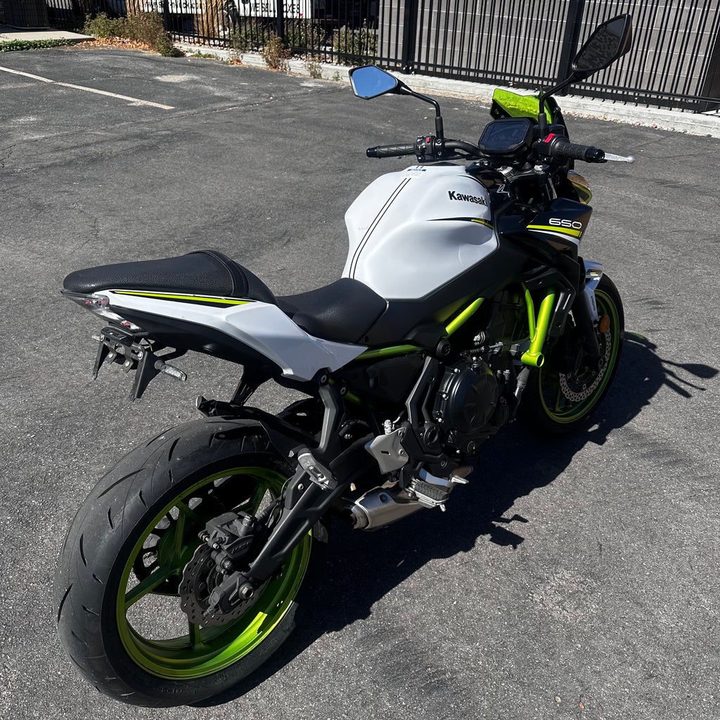 The 2021 Kawasaki Z650 is powered by a 649 cc liquid-cooled parallel-twin engine, giving punchy mid-range roll and confident power at street speeds. It comes equipped with ABS, assist & slipper clutch, TFT instrumentation with smartphone connectivity, and a lightweight chassis. Its upright riding position, nimble handling, and strong but manageable power make it a versatile naked bike that performs well in urban traffic and twisty roads alike. Best suited for beginner to intermediate riders who want more performance than an entry-level, but still an approachable and fun ride. Just 6,400 miles and a clean title!