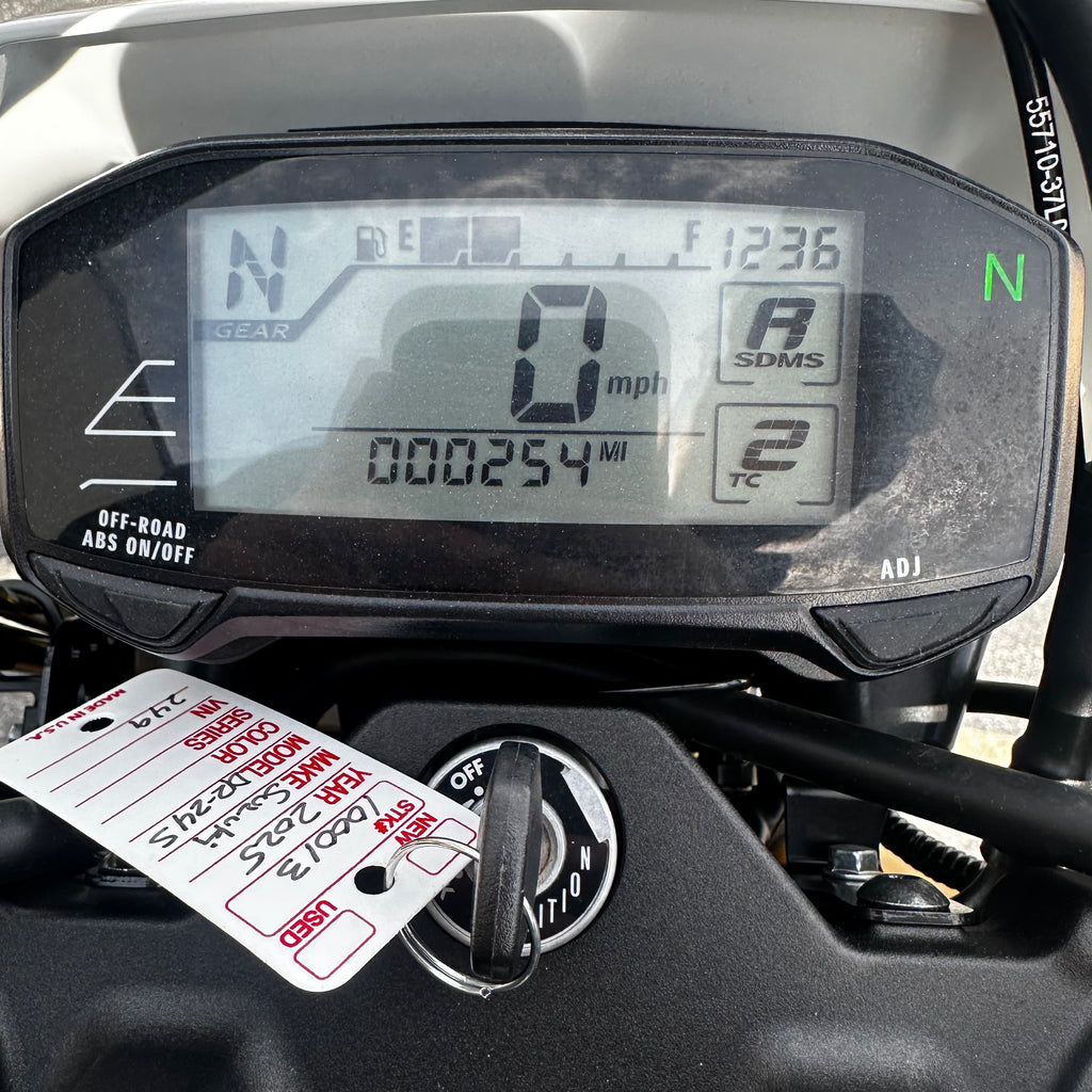ONLY 250 MILES, LIKE NEW!!! The 2025 Suzuki DR-ZS delivers spirited performance from its punchy 449cc four-stroke engine with smooth fueling. Its dual-sport design, long-travel suspension, and upright ergonomics handle both streets and trails with confidence. Lightweight agility makes quick work of city traffic and dirt paths alike. A versatile ride for explorers seeking fun on every surface!  Clean and clear title!