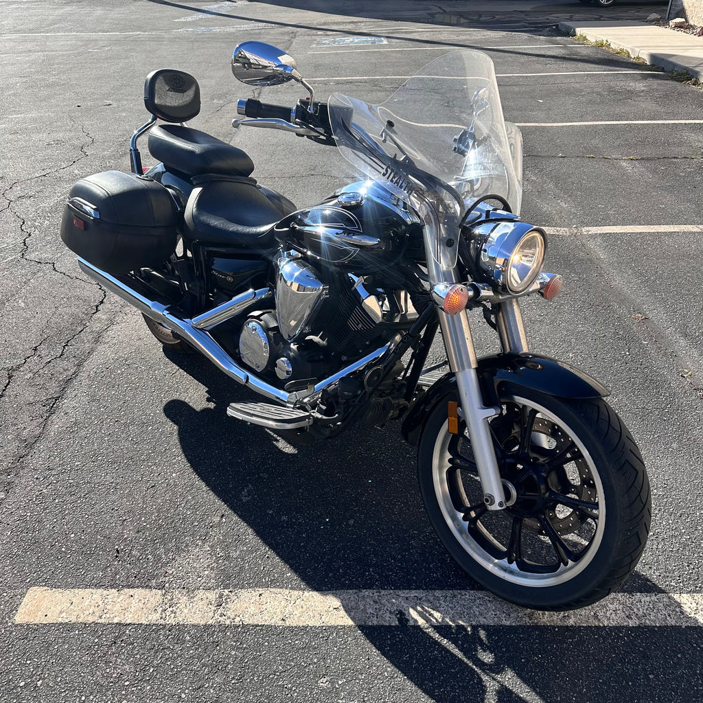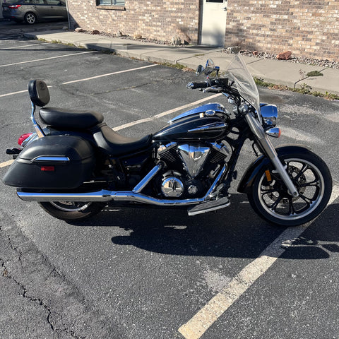 This Vstar has everything you need for touring or commuting but is much lighter than a full dress touring cruiser! It has a capable 950cc fuel injected engine. This tour model comes with large leather hard saddlebags, an upgraded windshield, floorboards, passenger backrest, and a comfort seat! Running great with just 30k miles and a clean title!