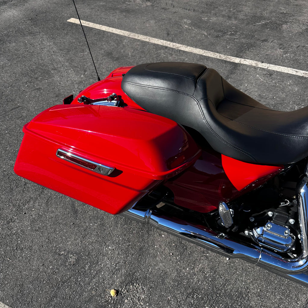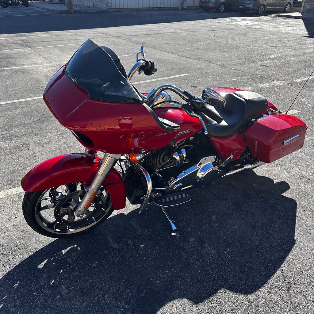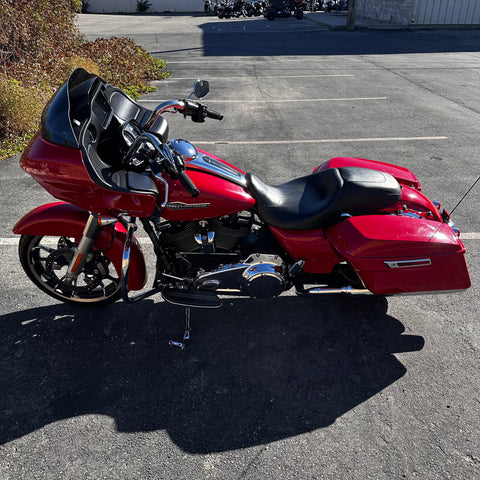 The 2023 Harley-Davidson Road Glide features a Milwaukee-Eight 107 V-twin, 1,746 cc engine delivering 111 lb-ft of torque, giving it strong low-end pull for highway cruising. This one has just 11,900 miles and a clean title! It comes with a frame-mounted Sharknose fairing, dual floating front rotors, a premium Big Twin touring chassis, full LED lighting, and high-capacity fuel tank with 6 gallons—plus the large saddlebags that make it ideal for loaded rides. Its blend of wind-cutting design, smooth road manners, and true long-distance comfort make it a tourer that looks as tough as it rides. Best suited for intermediate to experienced riders who want serious highway presence and capability—someone who values comfort, power, and style.
