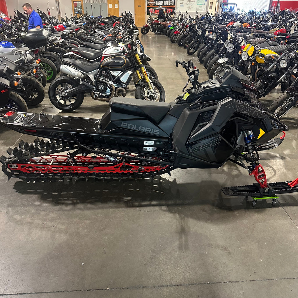 2023 Polaris 850 RMK Khaos Slash 165 with 1,000 miles. Powered by the 850 Patriot engine and built for deep snow performance, this sled is designed for agility and playful handling. The 165" track with 2.75" lug gives it serious floatation and traction in the steep and deep. A great choice for riders who want a lightweight, powerful mountain sled built to take on big terrain. Does not have electric start. Clean and clear title!